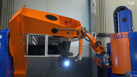 Mit kontinuierlichen Investitionen in den Maschinenpark und in die automatisierte Fertigung möchte H&G den wachsenden Kundenansprüchen gerecht werden. Deshalb hat das Unternehmen kürzlich in eine 60 Quadratmeter große Roboteranlage von CLOOS zum automatisierten Schweißen von Maschinengehäusen und Schneckenverdichtern investiert. Die neue CLOOS-Anlage ist speziell auf die Bedürfnisse der Produktion abgestimmt. Herzstück ist ein sechsachsiger QIROX-Schweißroboter QRC-410, der auf einem drehbaren Vertikalhub montiert ist, um den Arbeitsbereich zu erweitern. Die Anlage besteht aus zwei Stationen, die jeweils mit einem 1,5-Tonnen-Werkstückpositionierer ausgestattet sind. Sie verfügen über eine horizontal liegende Schwenkachse, an der ein L-förmiger Ausleger montiert ist. Im Ausleger integriert ist eine vertikale Drehachse mit horizontaler Planscheibe. Diese dient zur Aufnahme des Werkstücks. Der Werkstückpositionierer ist so ausgelegt, dass er die komplexen Werkstücke immer in eine für das Schweißen optimale Position bringen kann. Auf einer Station werden die Maschinengehäuse geschweißt, auf der anderen Station die Schneckenverdichter. Um dem Roboter eine konstante und reproduzierbare Arbeitsgrundlage bieten zu können, hat H&G ein ausgeklügeltes Spannvorrichtungssystem entwickelt und gefertigt.