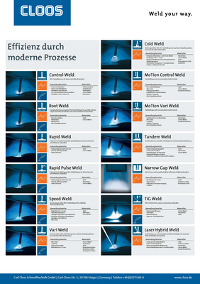 Alle Schweißpositionen auf einen Blick? Welcher Schweißprozess ist für welches Material und welchen Anwendungsbereich geeignet? Welche technischen Daten decken die einzelnen Schweißprozesse ab? Diese und ähnliche Fragen wurden uns immer wieder gestellt - jetzt haben wir die Antworten zusammengefasst und auf jeweils einem Poster übersichtlich dargestellt: