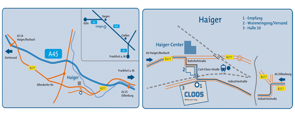 - Turn right onto Carl-Cloos-Strasse. After 250m you arrive at CLOOS.
